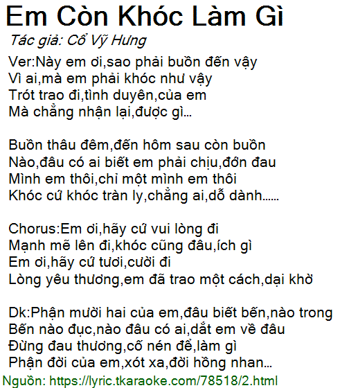 Chorus:Em ơi,hãy cứ vui lòng đi