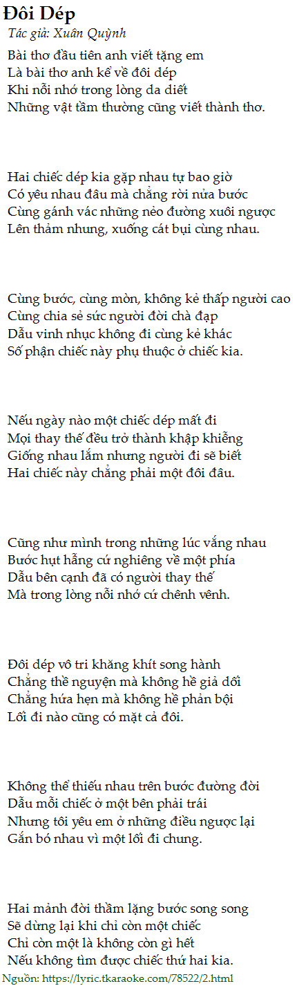 Là bài thơ anh kể về đôi dép