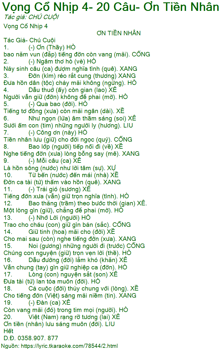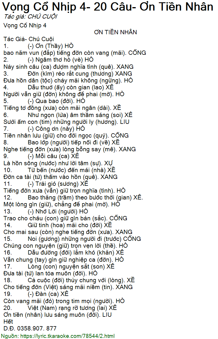 13. (-) Nhớ Lời (người) HÒ