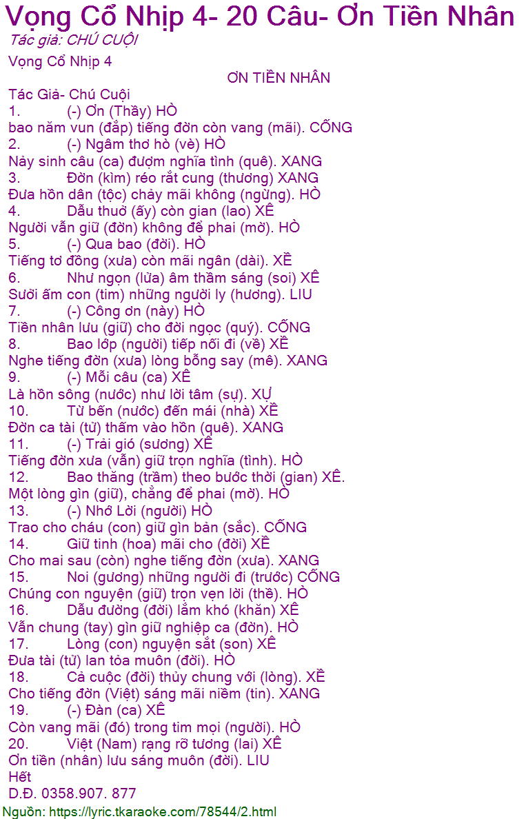 1. (-) Ơn (Thầy) HÒ