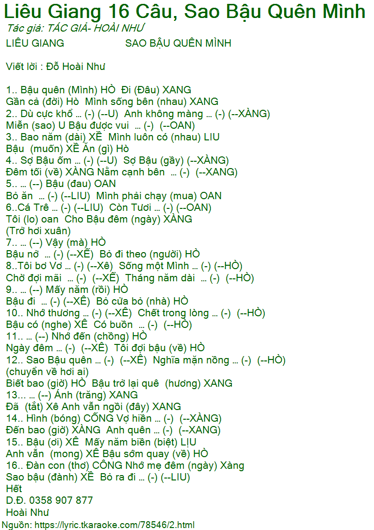 12.. Sao Bậu quên … (-) (--XÊ) Nghĩa mặn nồng … (-) (--HÒ)
