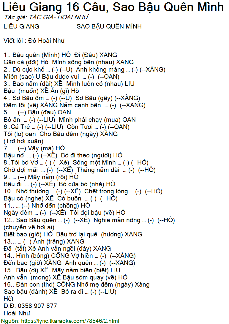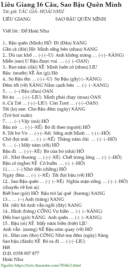 1.. Bậu quên (Mình) HÒ Đi (Đâu) XANG