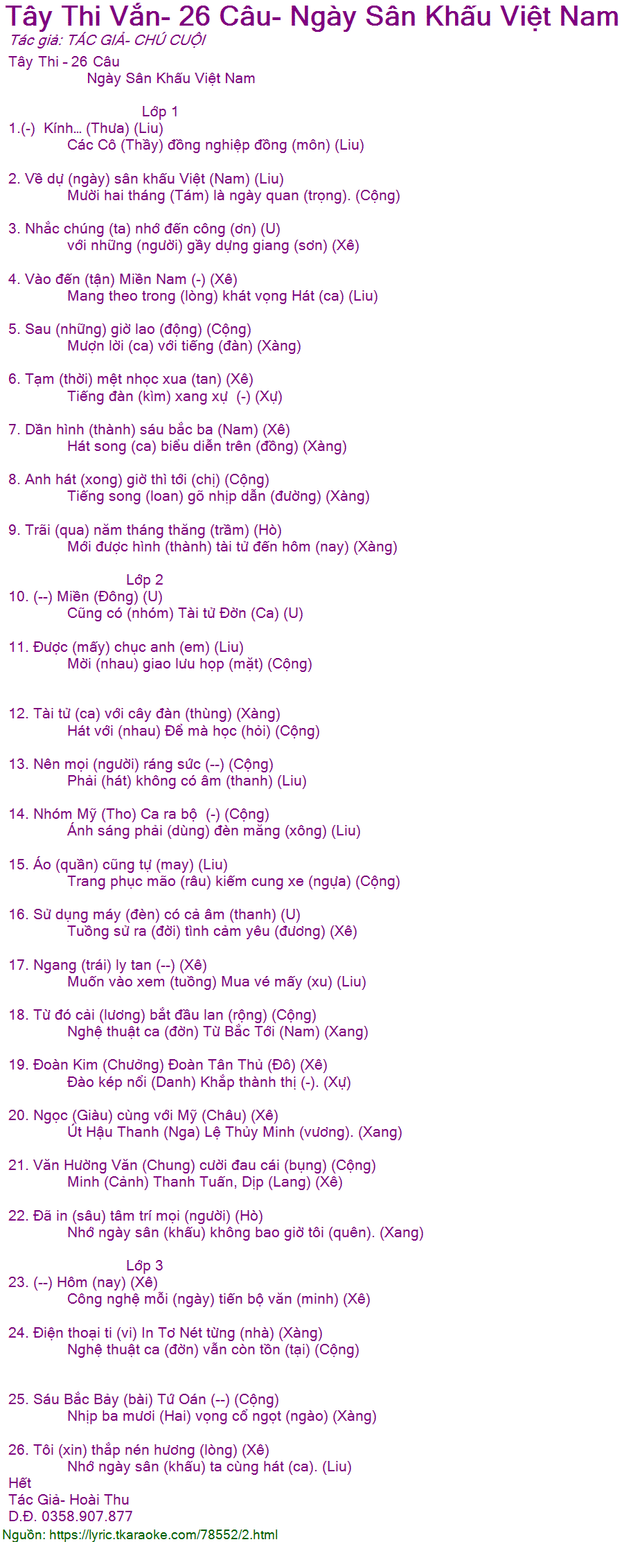 Hát với (nhau) Để mà học (hỏi) (Cộng)
