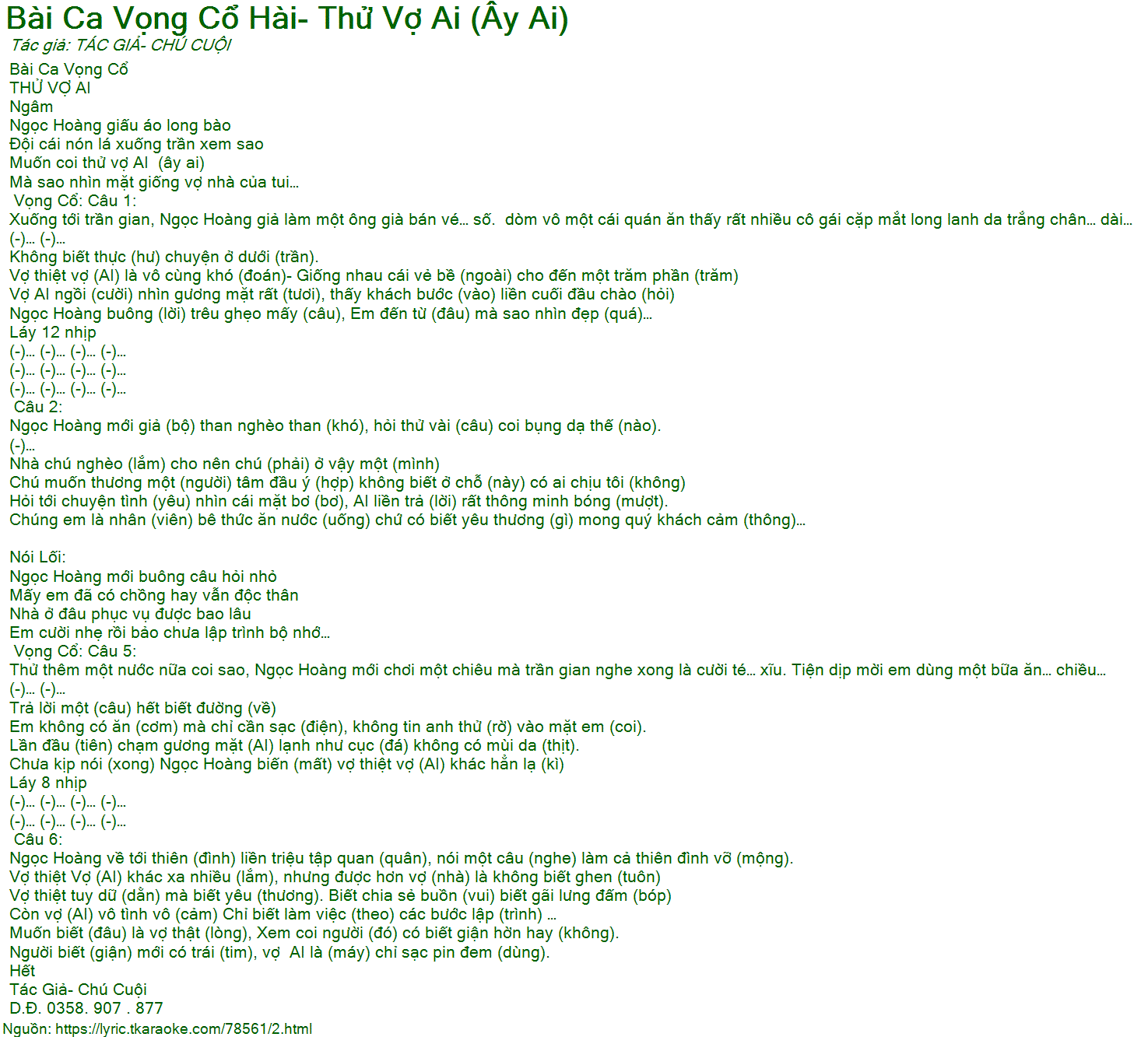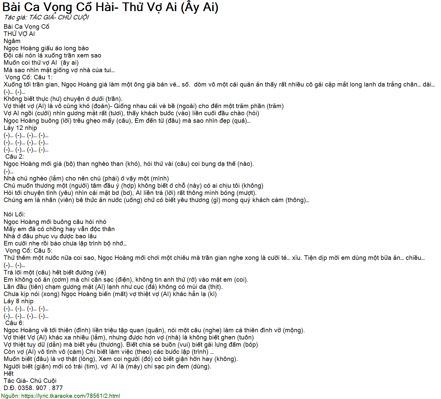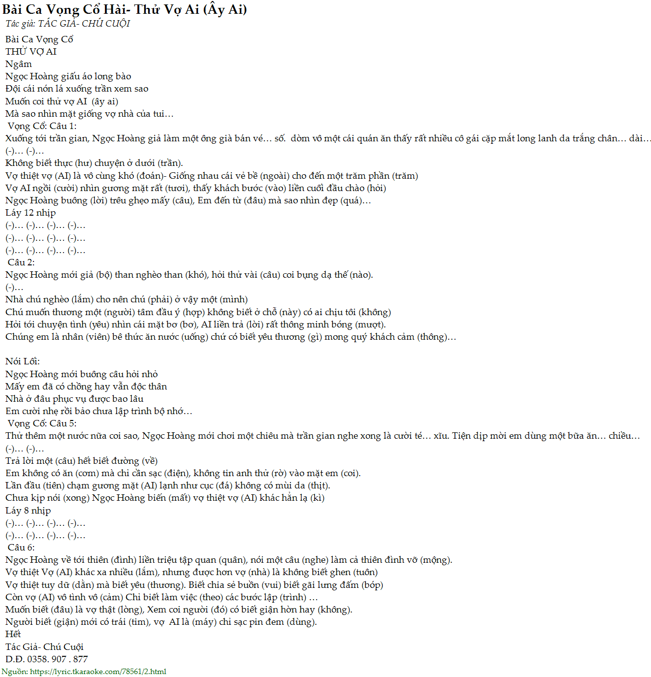 Còn vợ (AI) vô tình vô (cảm) Chỉ biết làm việc (theo) các bước lập (trình) …