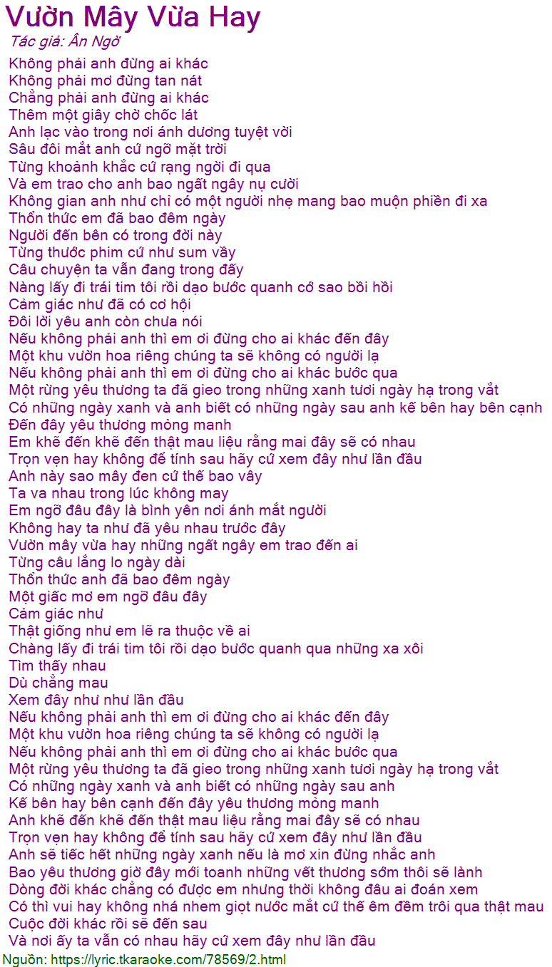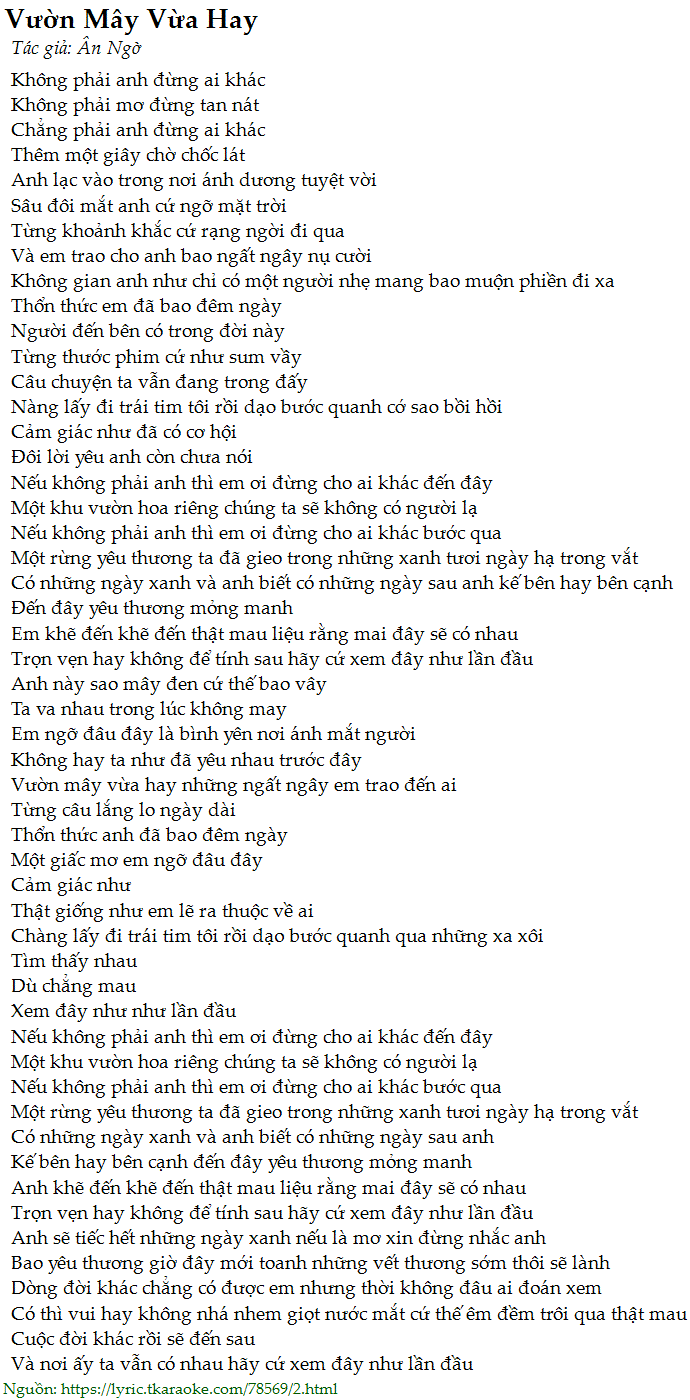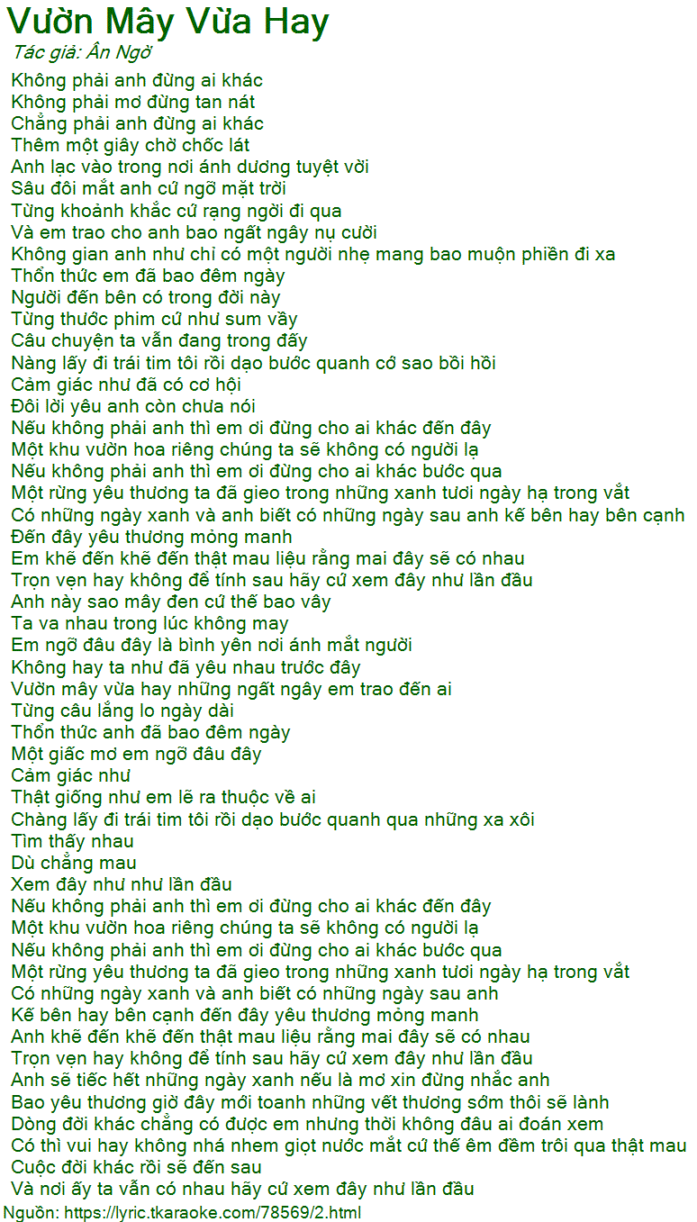 Vườn mây vừa hay những ngất ngây em trao đến ai
