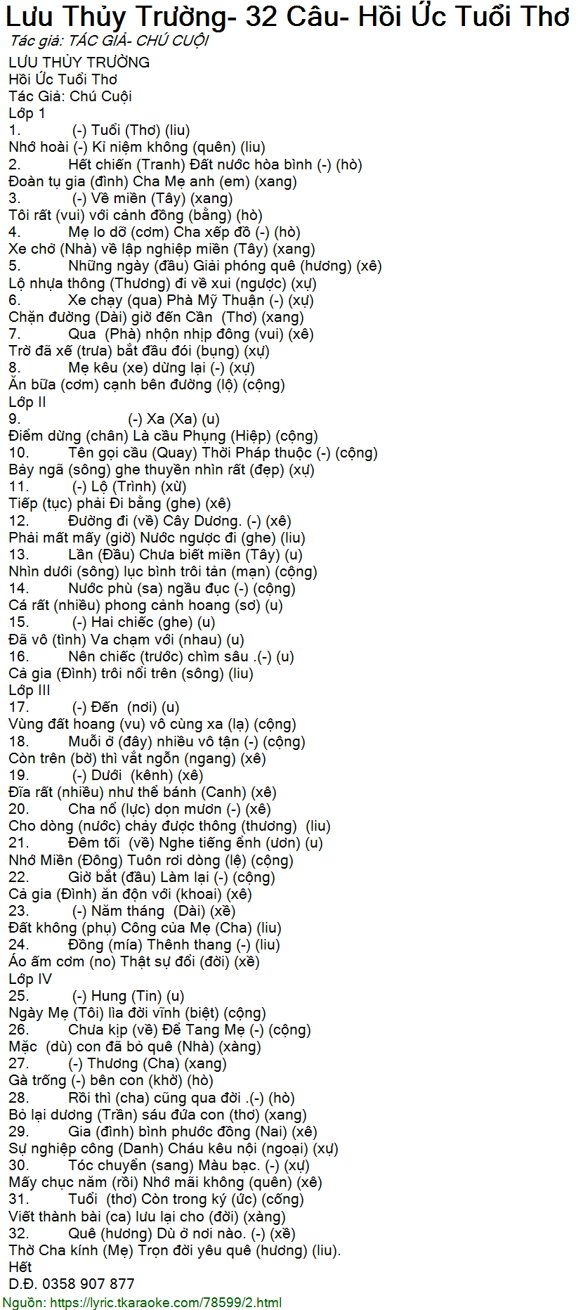 32. Quê (hương) Dù ở nơi nào. (-) (xề)