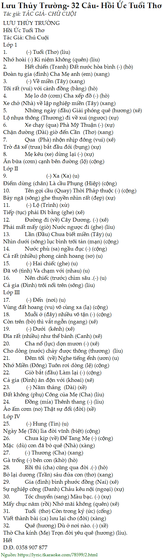 1. (-) Tuổi (Thơ) (liu)