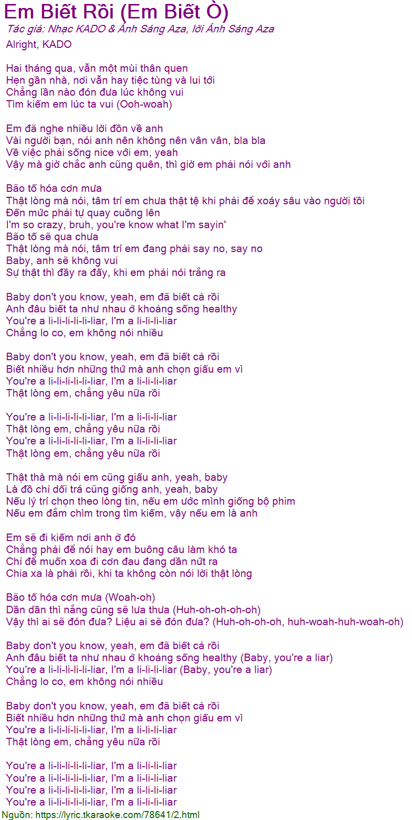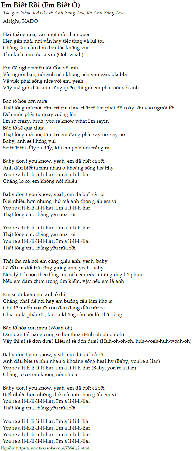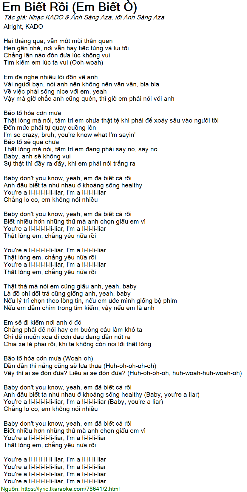 Anh đâu biết ta như nhau ở khoảng sống healthy (Baby, you're a liar)