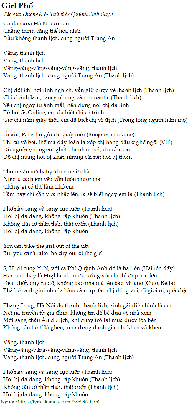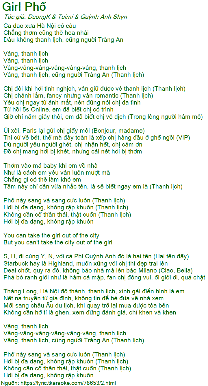 Vâng, thanh lịch, cũng người Tràng An (Thanh lịch)