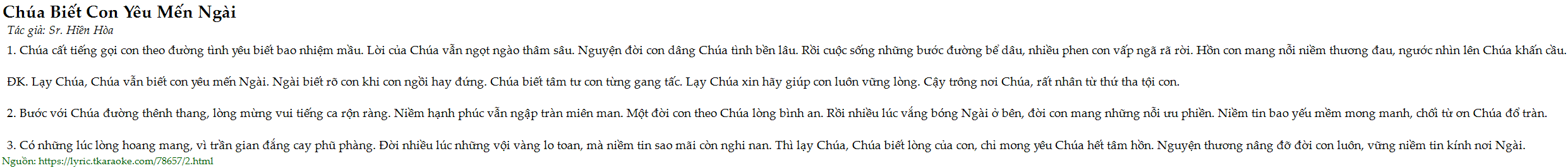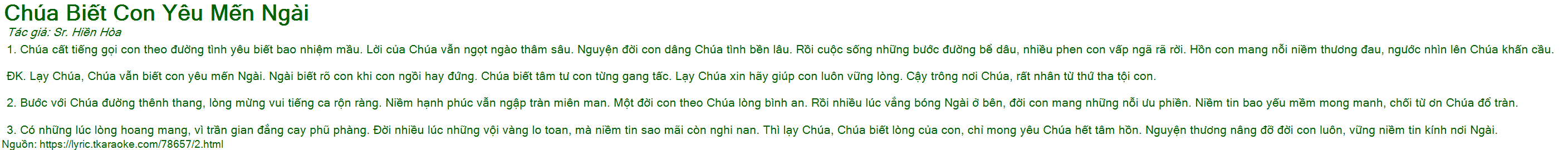 3. Có những lúc lòng hoang mang, vì trần gian đắng cay phũ phàng. Đời nhiều lúc những vội vàng lo toan, mà niềm tin sao mãi còn nghi nan. Thì lạy Chúa, Chúa biết lòng của con, chỉ mong yêu Chúa hết tâm hồn. Nguyện thương nâng đỡ đời con luôn, vững niềm tin kính nơi Ngài.