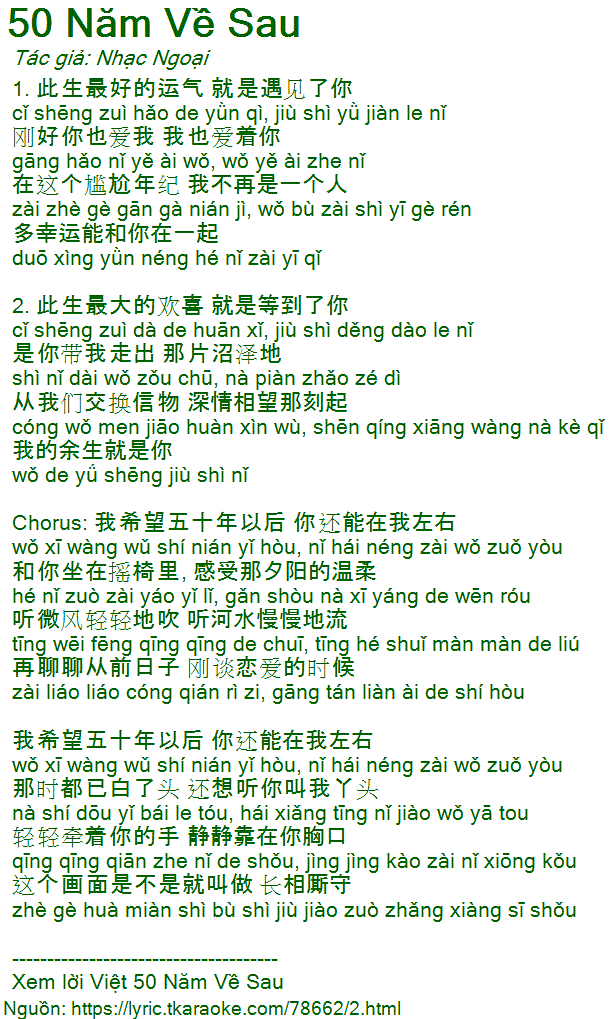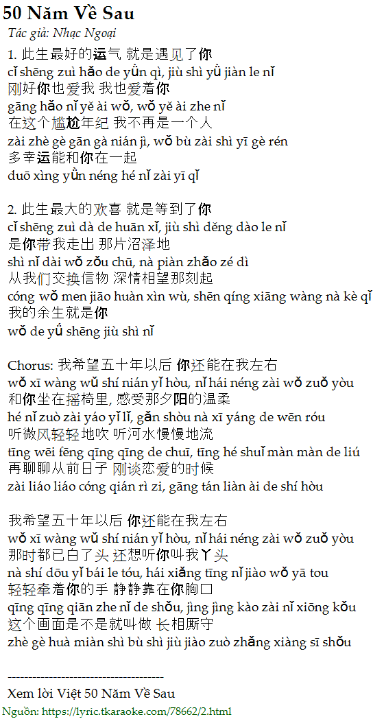 Chorus: 我希望五十年以后 你还能在我左右