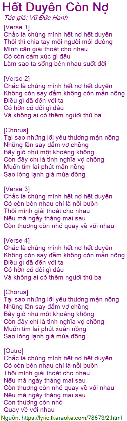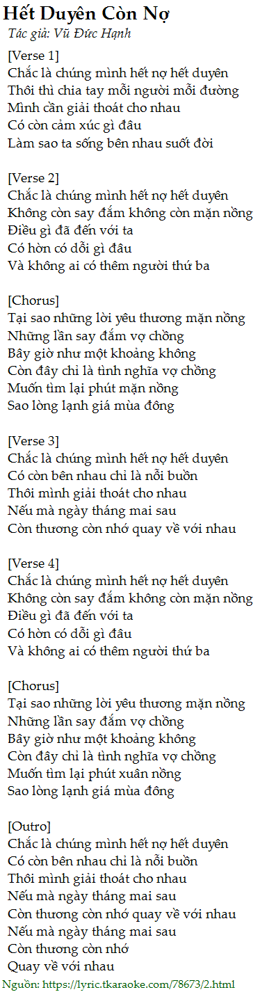 Chắc là chúng mình hết nợ hết duyên