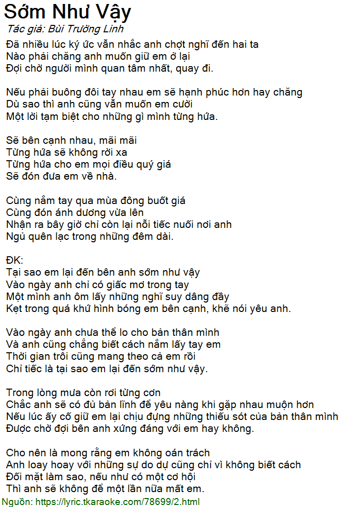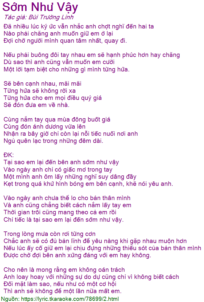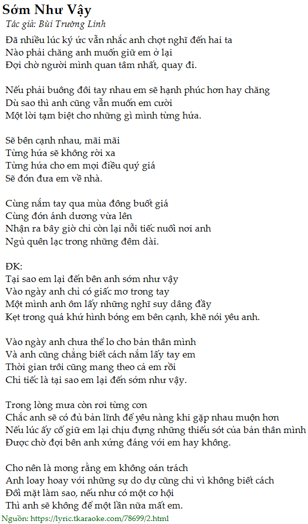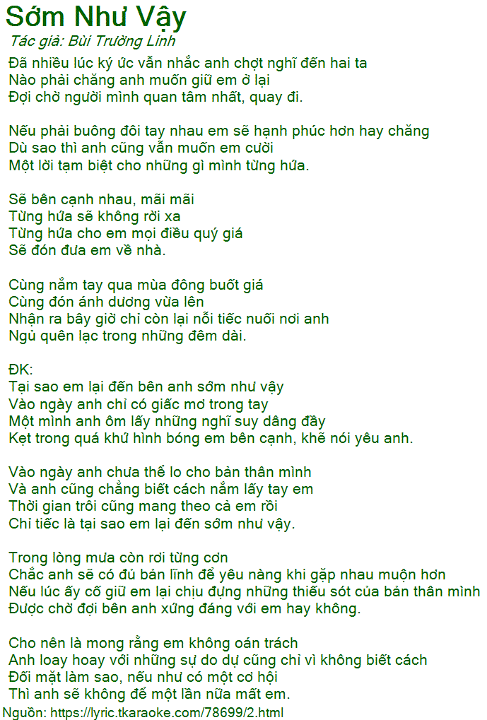 Tại sao em lại đến bên anh sớm như vậy