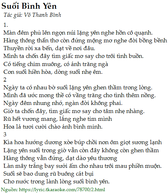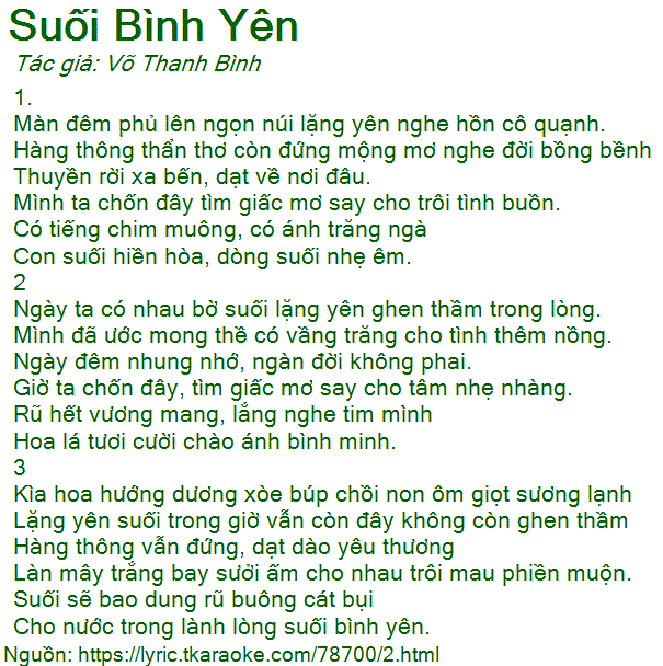 Cho nước trong lành lòng suối bình yên.